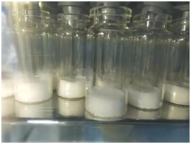 将混有冻干保护剂的均质液体样品分装在10mL西林瓶中。程序冻干: